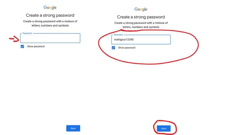 जो लोग सर्च करते हैं कि play store ki id kaise banate hain, वो अक्सर पासवर्ड में गलती करते हैं। यहाँ आपको एक मज़बूत पासवर्ड बनाना है जिसमें अंग्रेजी के अक्षर (A, B, C), नंबर (1, 2, 3) और सिंबल (@, #) तीनों मिक्स हों। इस पासवर्ड को किसी डायरी में लिख लें ताकि आप इसे भूलें नहीं।
